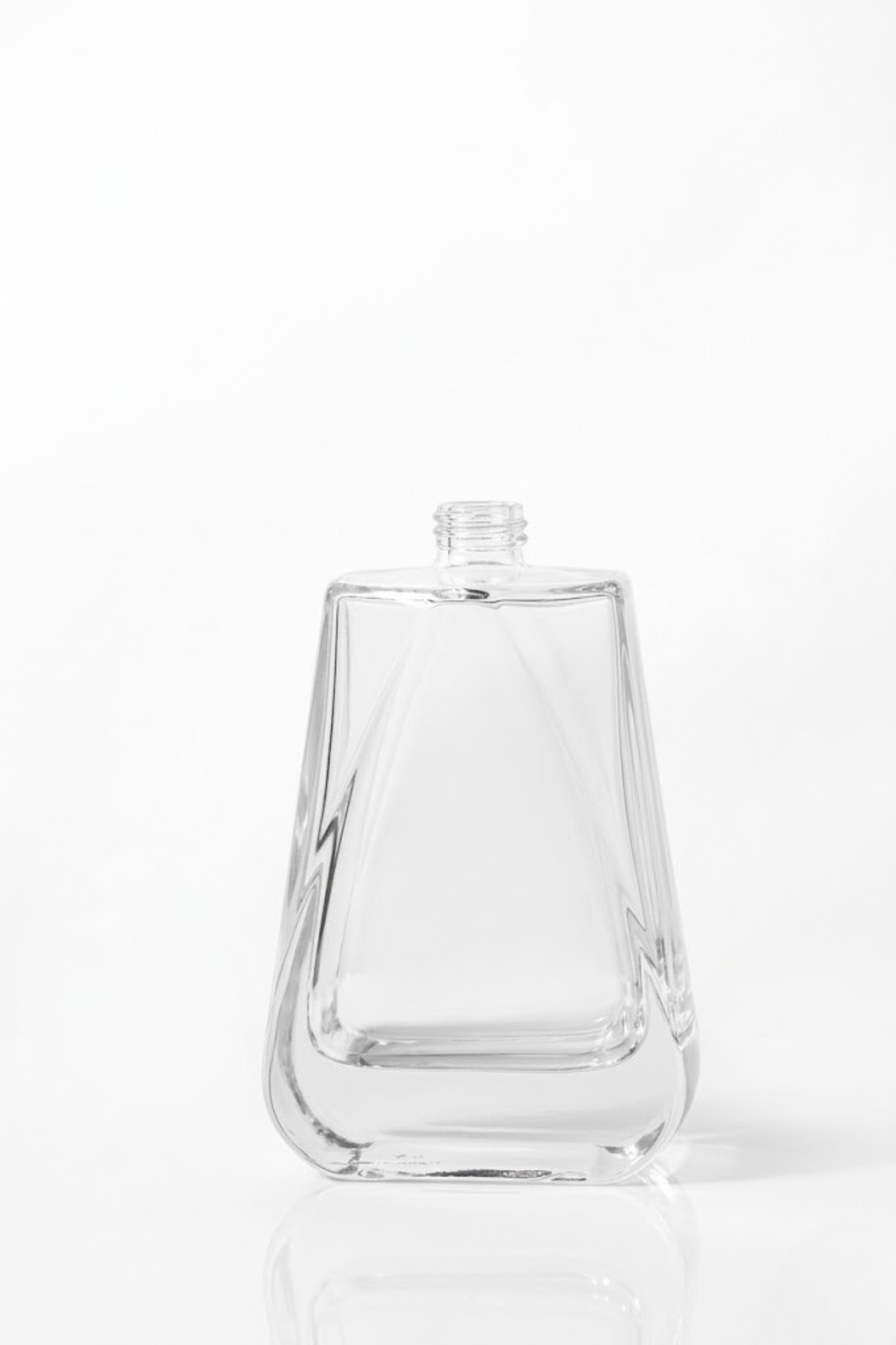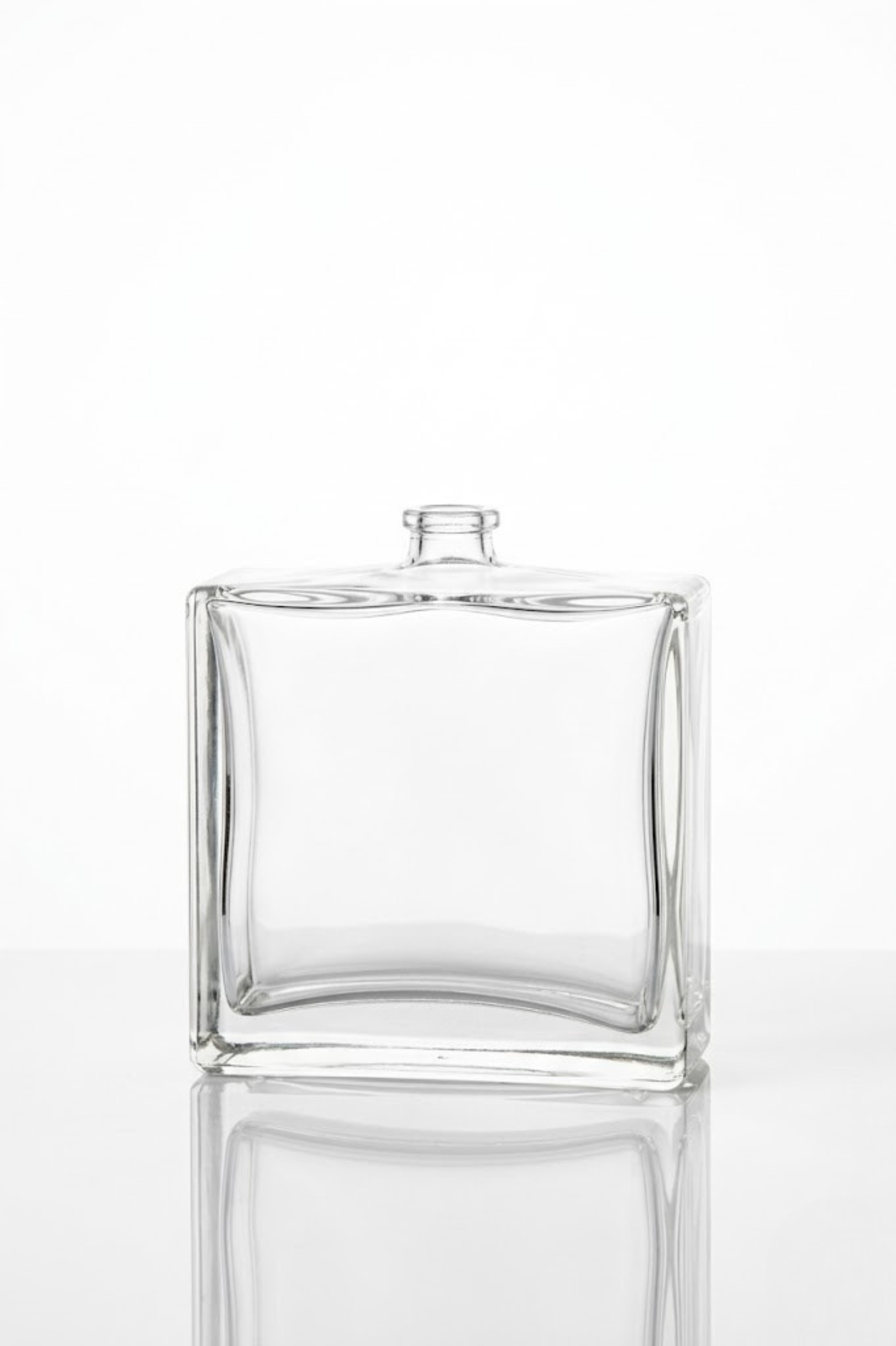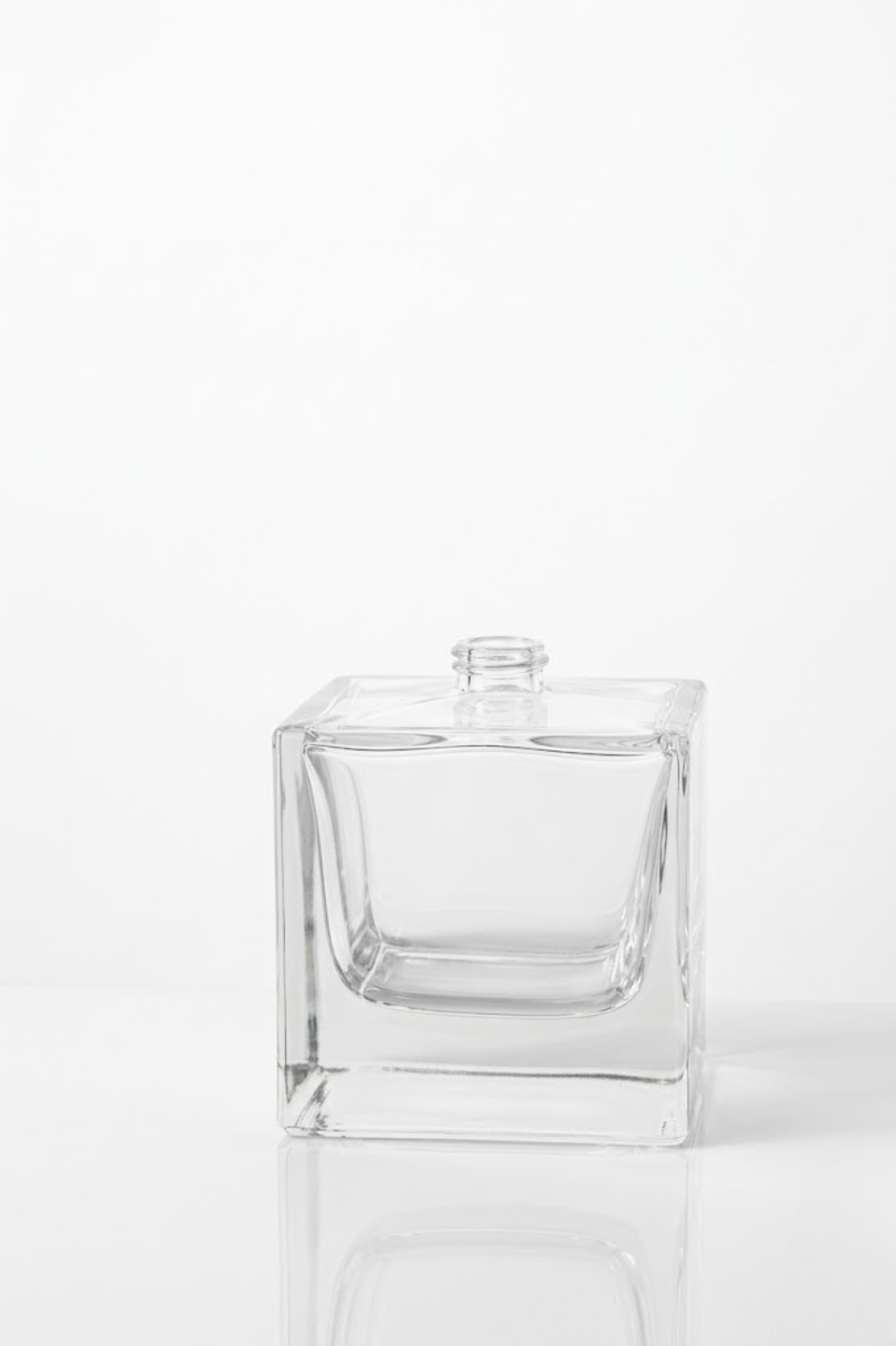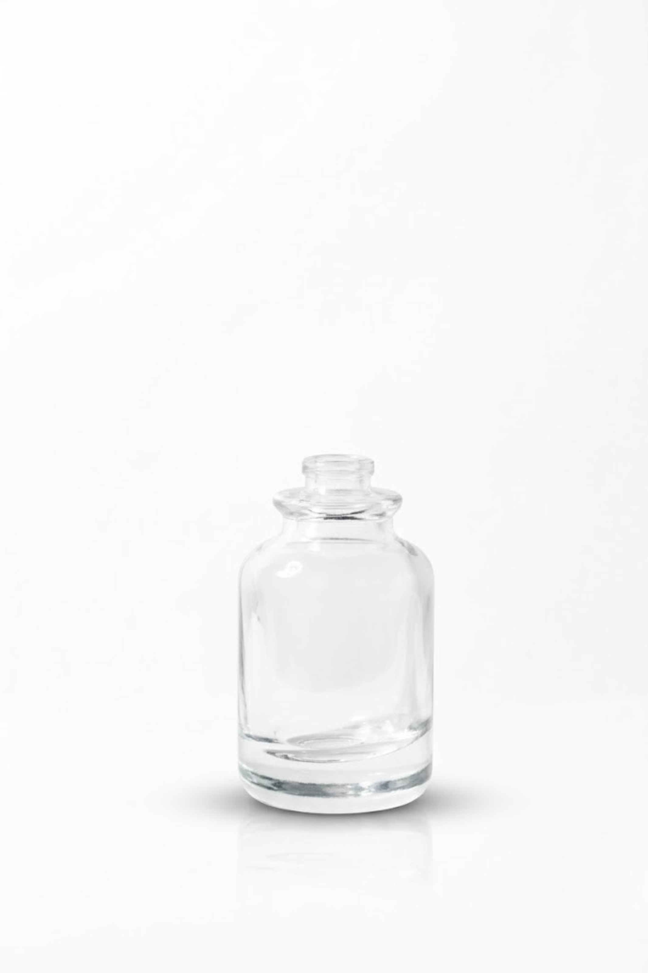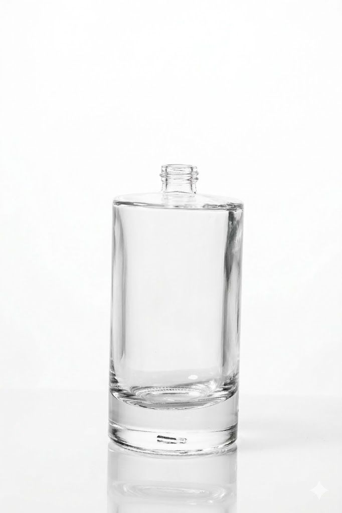 Premium bottles in various shapes and sizes (15ml to 100ml) with clear, frosted, or colored finishes.